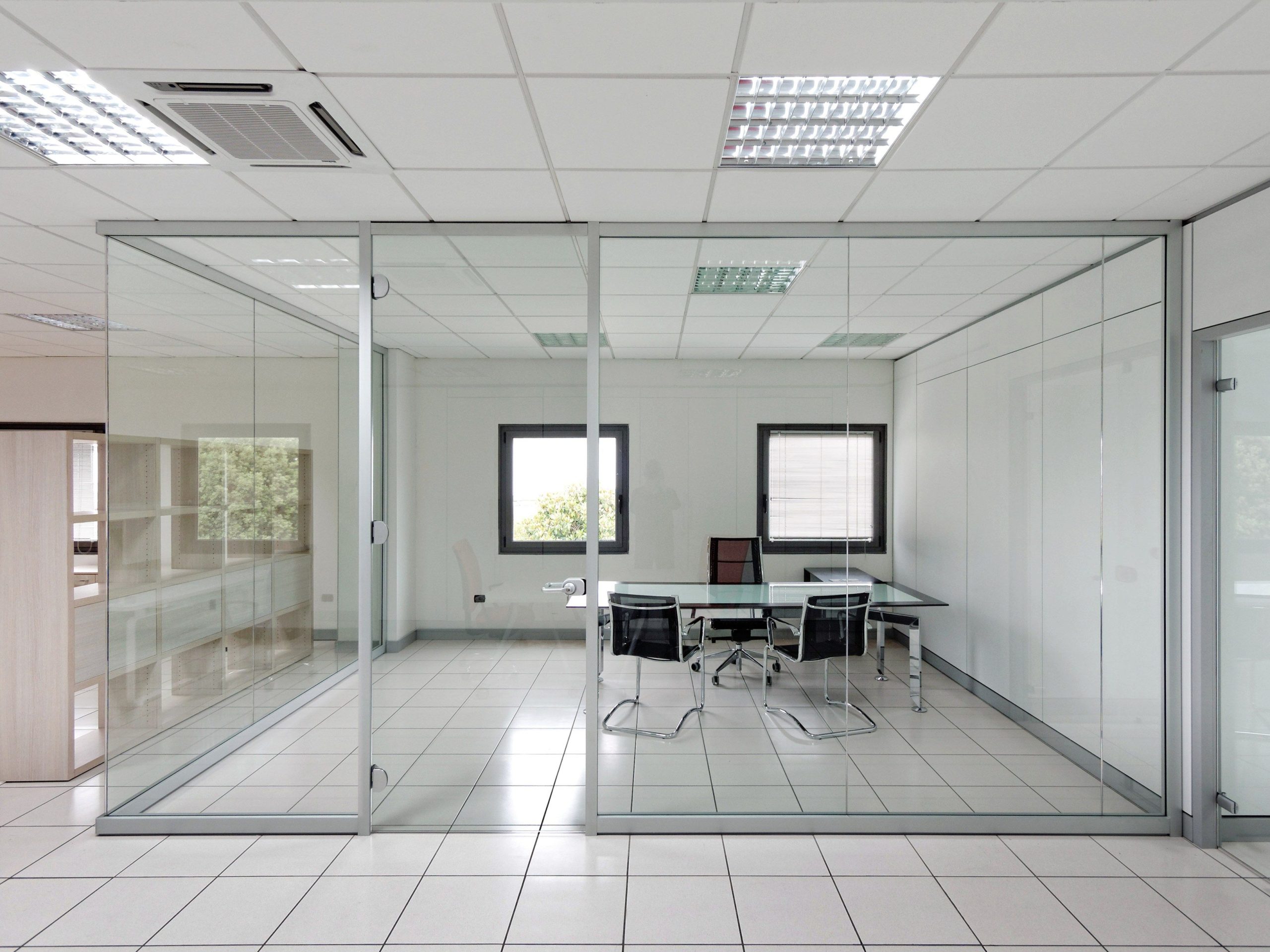 Las mamparas de oficina de cristal representan estilo y simplicidad.